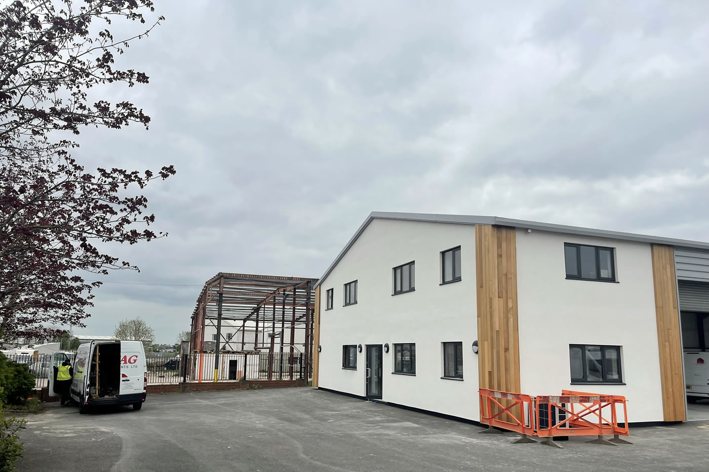 Internal and external refurbishment of a vacant industrial unit based on both landlord and ingoing tenant requirements. External works included replacement built up roofing and vertical cladding, aluminium windows and doors, insulated sectional doors, through colour render, cedar cladding and decorations to existing brickwork. Full replacement of the internal warehouse floor slab was required to suit tenant requirements along with new amenity areas, decorations and full fit out.